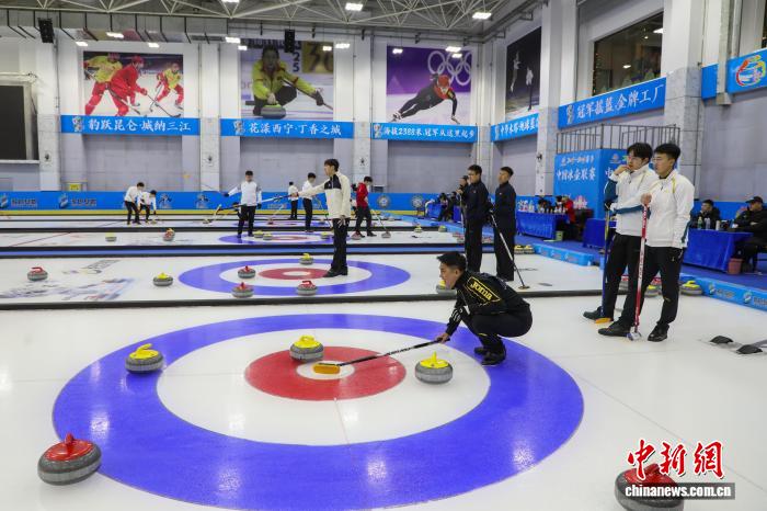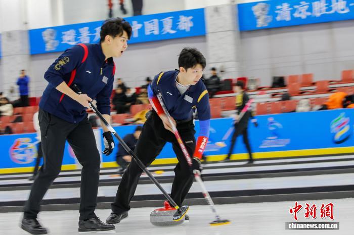 图为乌龙江两队选脚于镇也正在角逐中抛壶。中新社记者 马铭行 摄